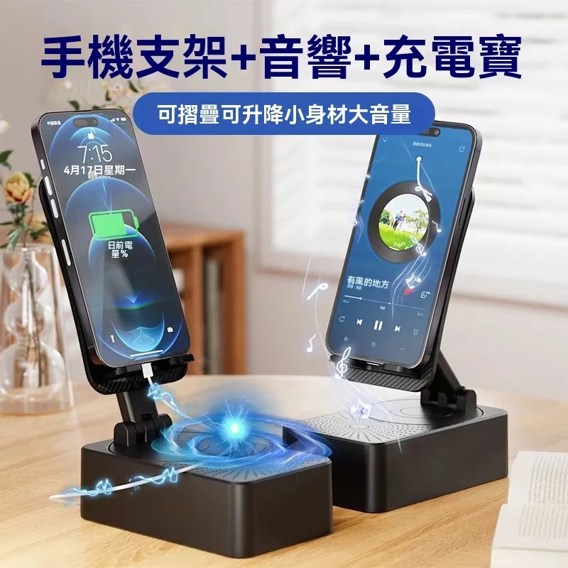 半小時前一機多用超省心懶人福音 三合一旋轉手機支架+快充行動電源+藍牙音響隨身多功能數碼神器 - 【品質之選】1入組-NT$998