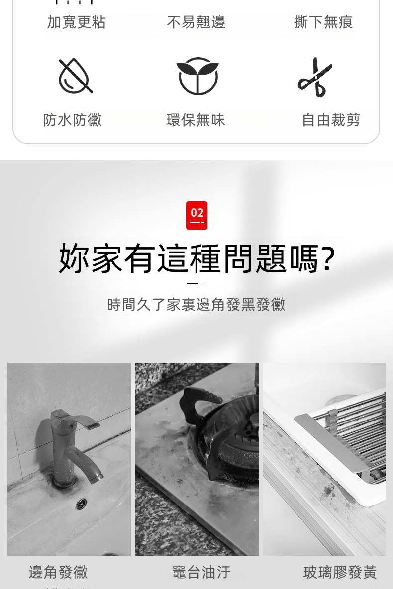 4分鐘前限時搶購 美縫貼防水防霉廚房水槽洗碗灶台封邊擋水條,衛生間馬桶邊緣縫隙貼 - 【嘗鮮價】3入組-NT$980