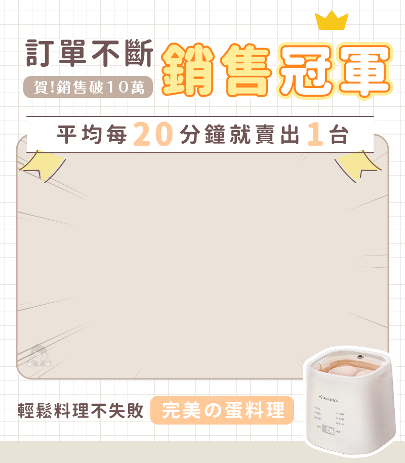 半小時前Pink Bunny智能煮蛋機智能控溫烹煮,營養美味輕鬆上桌 - Pink Bunny智能煮蛋機1入組 NT$1090
