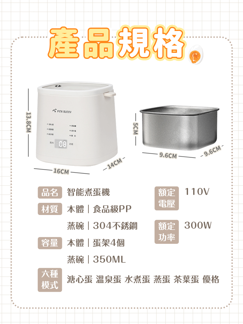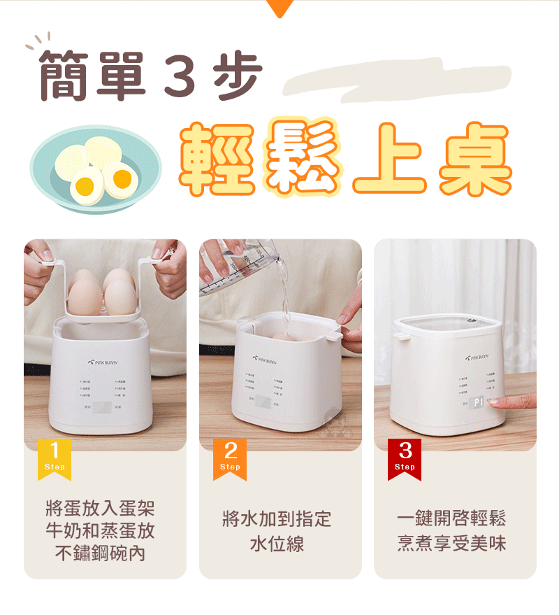15分鐘前Pink Bunny智能煮蛋機智能控溫烹煮,營養美味輕鬆上桌 - Pink Bunny智能煮蛋機1入組 NT$1090